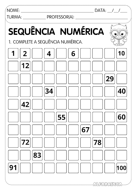 SEQUÊNCIA NUMÉRICA - NÚMEROS 1 A 100